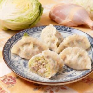 The wrapper is made from high-gluten wheat flour with a small amount of salt added to increase elasticity. The filling contains: cabbage, potato, green beans, onion, ginger, garlic, cooking oil, and soy sauce. Each dumpling weighs approximately 20g. It can be prepared using different methods before serving, such as boiling, steaming, deep-frying, or pan-frying.